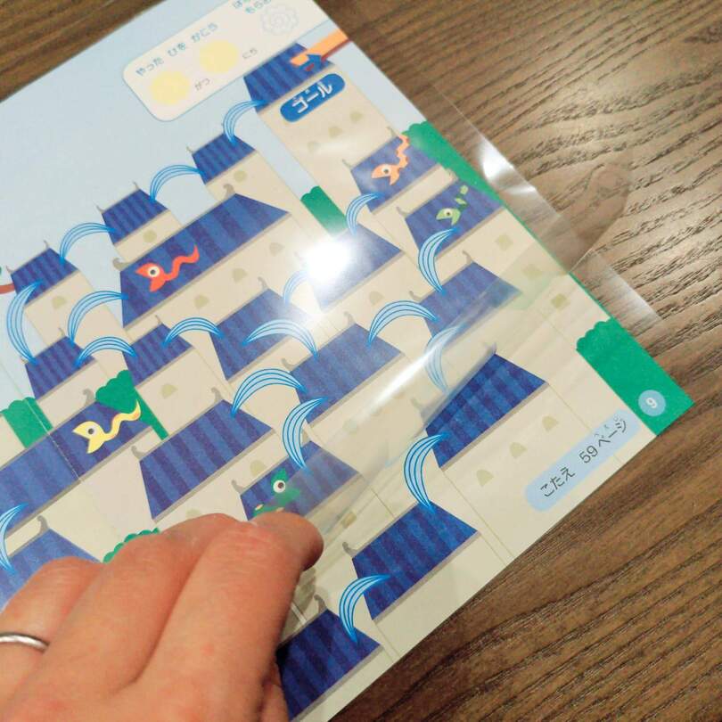 そうそう、めいろって道を間違えると面倒くさいんですよね。紙のワークだと消しゴムで消しているうちに、紙をぐしゃってしてしまうことも。その点、ラミネートしてあると消すのも楽ちん☆すぐにやり直しができて、長男も「これいいね!」とご機嫌でした♡