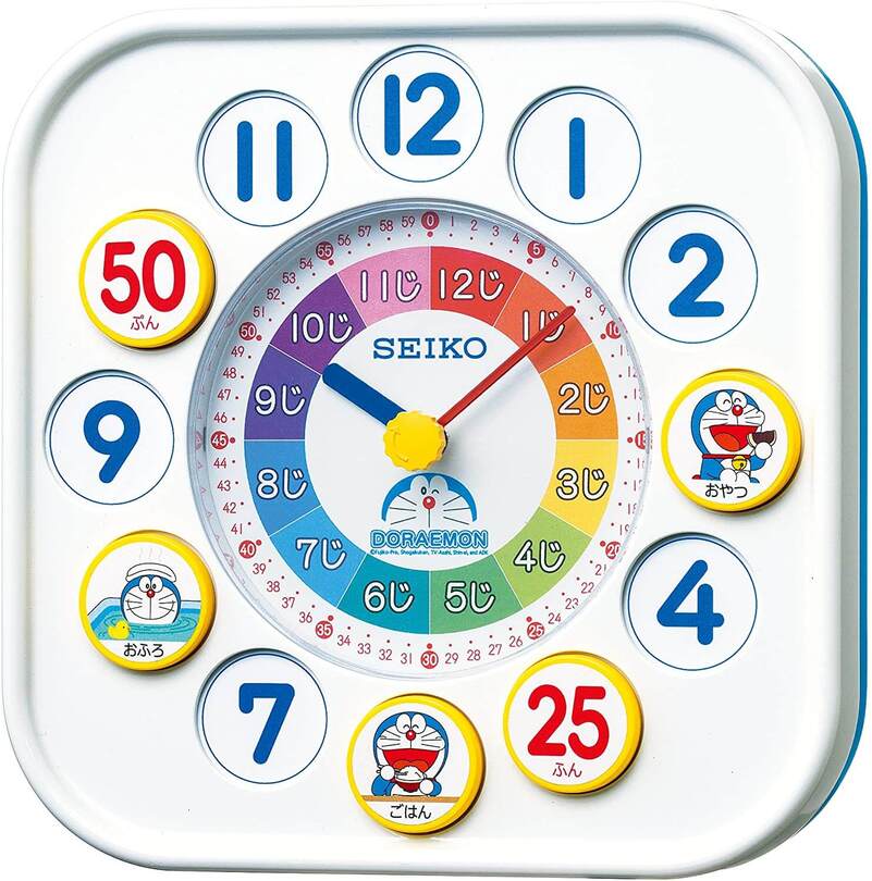 触れながら時間が学べるドラえもんの知育時計です。時間や生活のイラストが描かれたマグネット式のプレートを自分ではめたり、黄色のつまみを動かしながら時刻や時間の勉強ができます。有名時計ブランドの知育時計だから、時計としての性能も安心です。