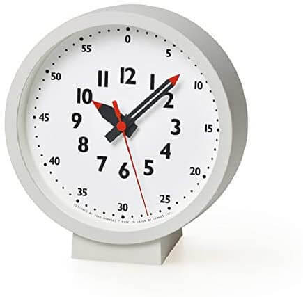 直径15㎝で置く場所を選ばない、コンパクトタイプの置き型知育時計です。文字盤は時間と分のみですが、鉛筆のデザインの針の先に数字がくるようにデザインされているため、シンプルながらも時刻がわかりやすいのが魅力。おしゃれなインテリアにも似合うモダンなデザインです。