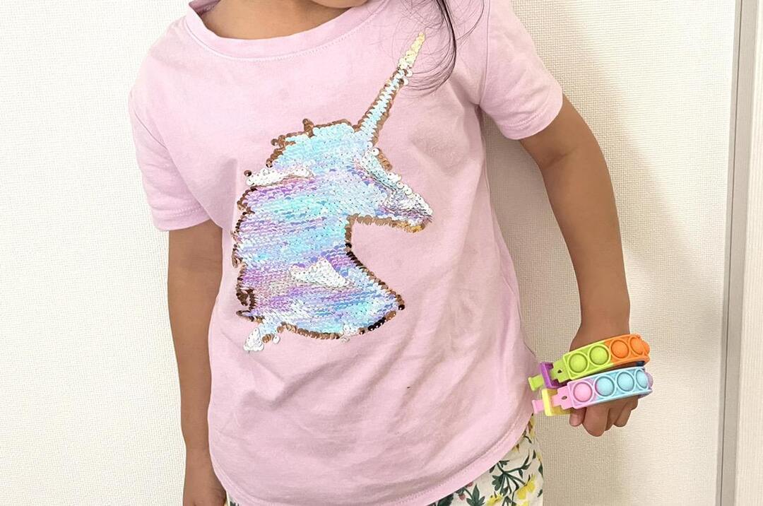 大好きなプッシュポップが身につけられると聞いて、5歳の娘がさっそく装着!