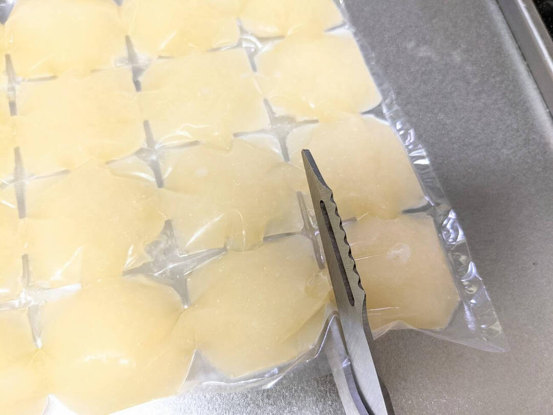 凍らせたら、使いたい分だけカットして使用します。残りは再び冷凍庫で保管できるので、一度にたくさん作ってストックしておくことが可能です♪