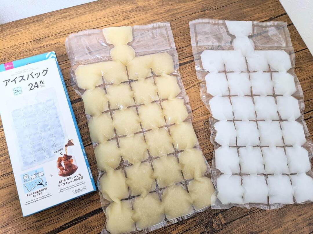 どちらも形状や使い方は同じで、1枚の袋で24個の氷ができます。
