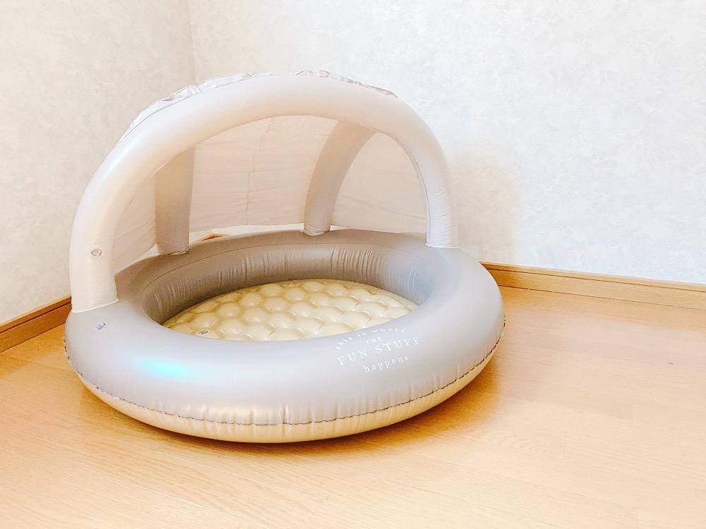 こちらが「サンシェード付きプール」(1980円・税込)です。対象年齢は3歳以上。オンライン限定でドット柄も販売されていましたが、こちらは即完売。
