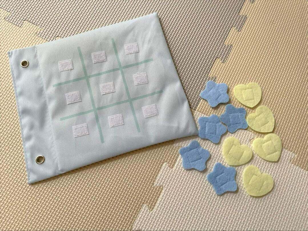表面は「3目並べ」になっています。コマはかわいい星とハート型♪マジックテープでコマを置く場所がわかりやすく、遊んでいるうちにずれたりしないのもうれしいポイントです。