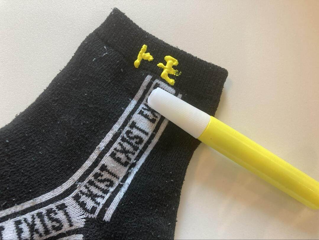 布にも使えるとあるので、ふと思いつき、名前つけが難しい「黒い靴下」に名前を書いてみることにしました。