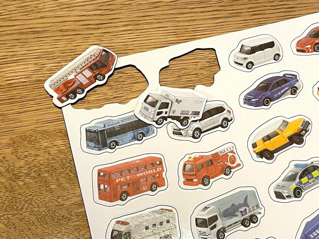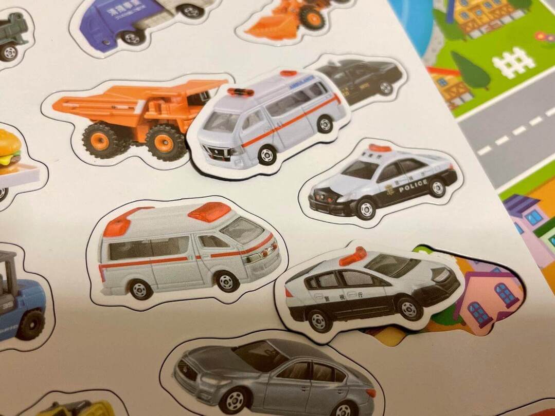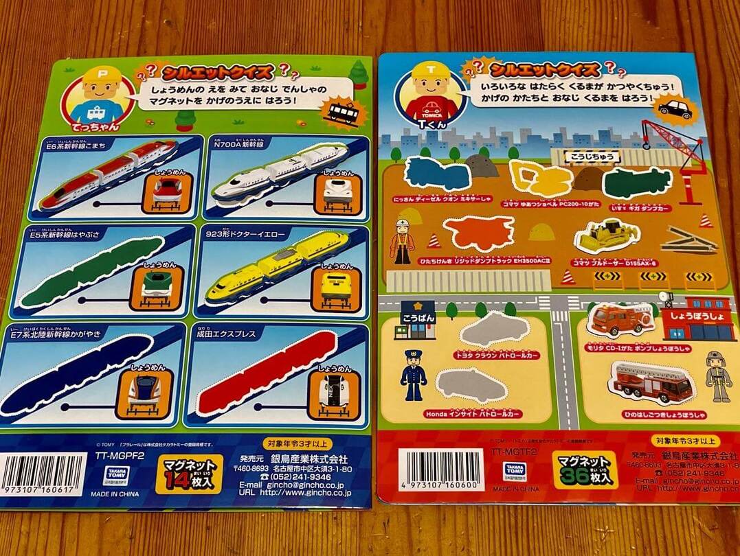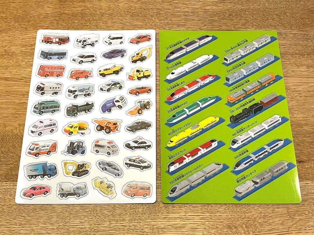 トミカには36台分、プラレールは在来線、新幹線合わせて14種類のマグネットシールがついています。