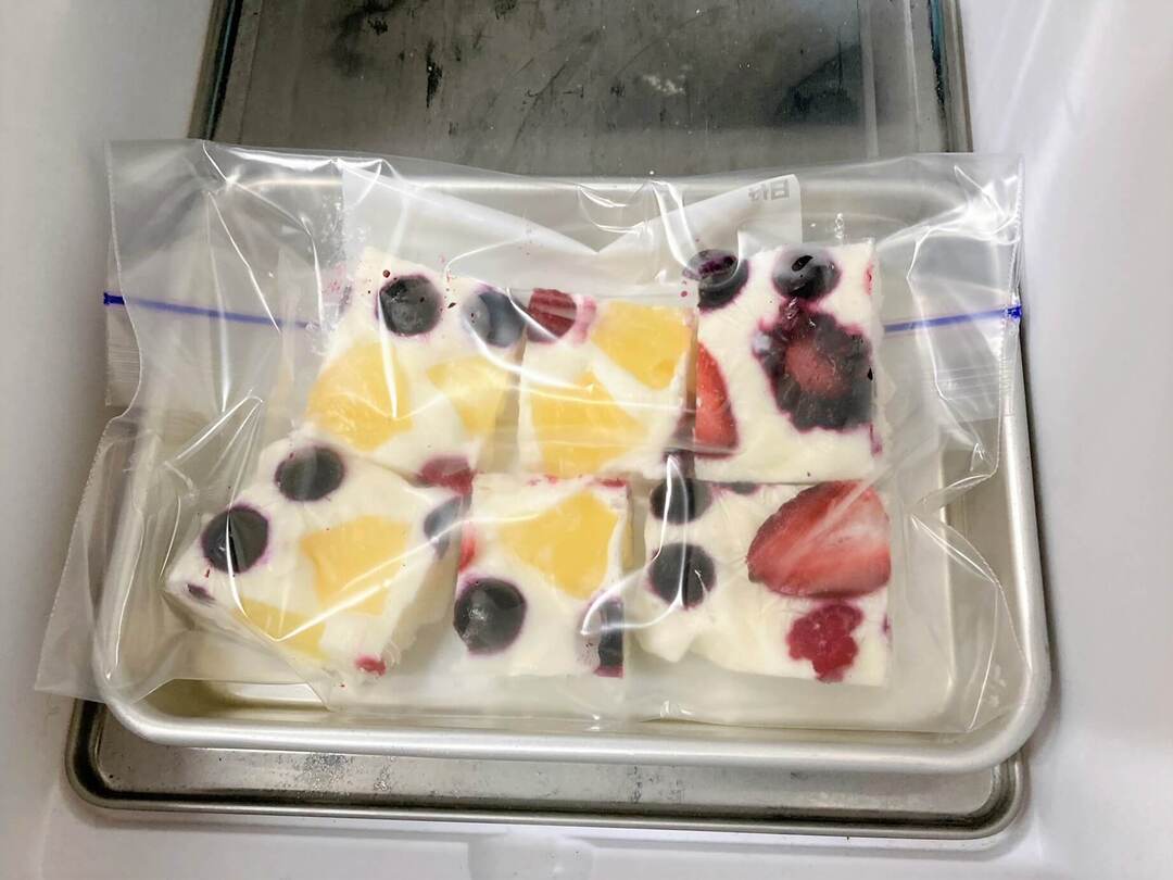 食べきれなかったヨーグルトバークは保存袋に入れて冷凍しておくと、好きな時にさっと食べられますよ。