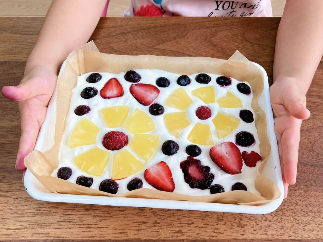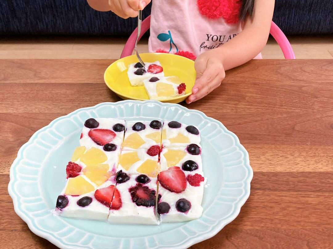 あっさりしていますが、フルーツで満足感もあり大人も子どももおいしく食べられます。甘さが足りないときは上からはちみつをかけても◎。