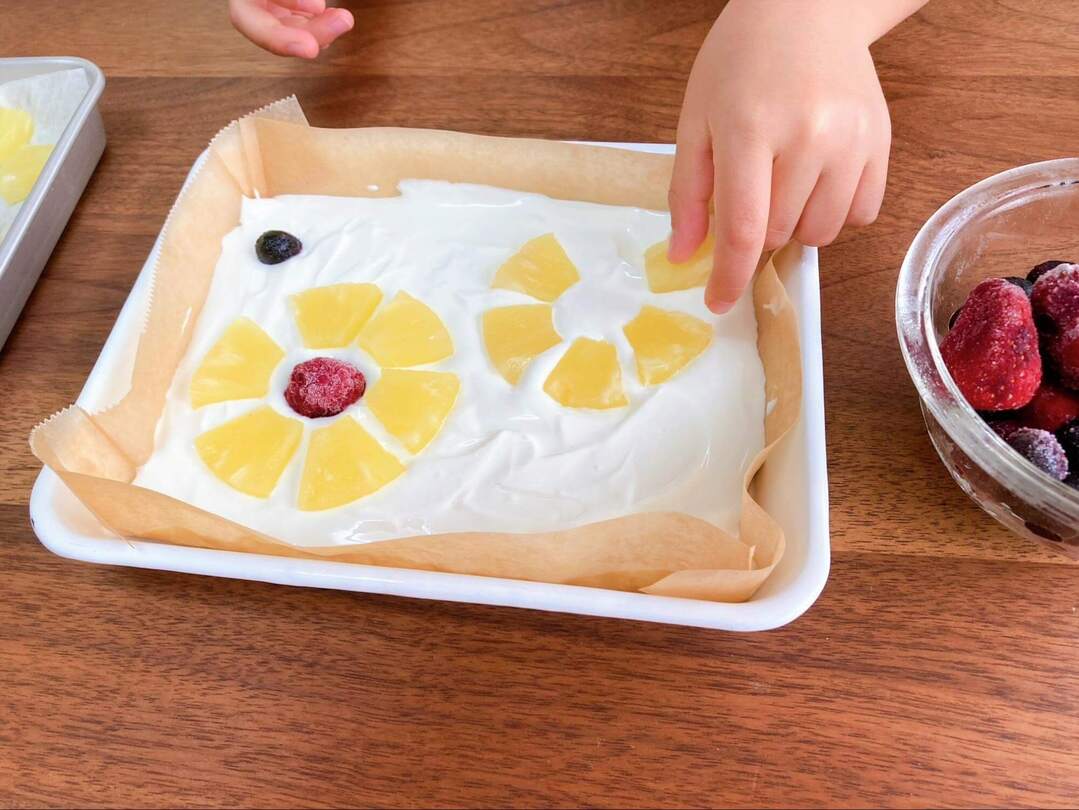 4歳の娘さんを子育て中のまきくろさんに、おやこで「ヨーグルトバーク」を作ってもらいました。