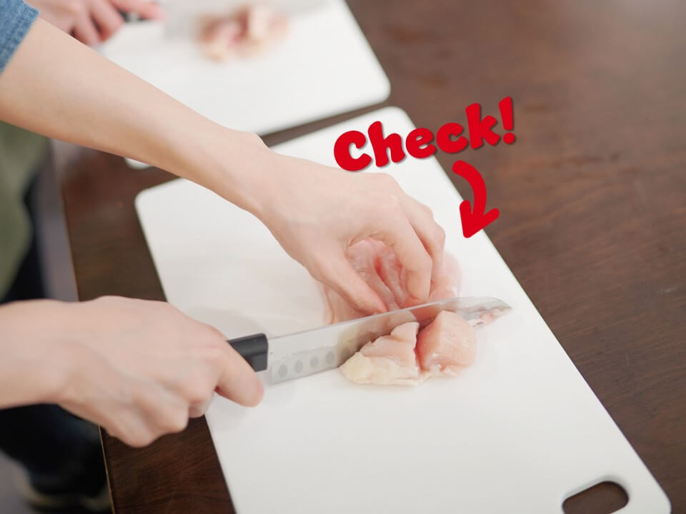 食中毒の原因になる細菌のほとんどは「75℃で1分の加熱」で死滅します。とはいえ、温度を計ることはできないので、いつもの料理よりもしっかり加熱するように心がけましょう。