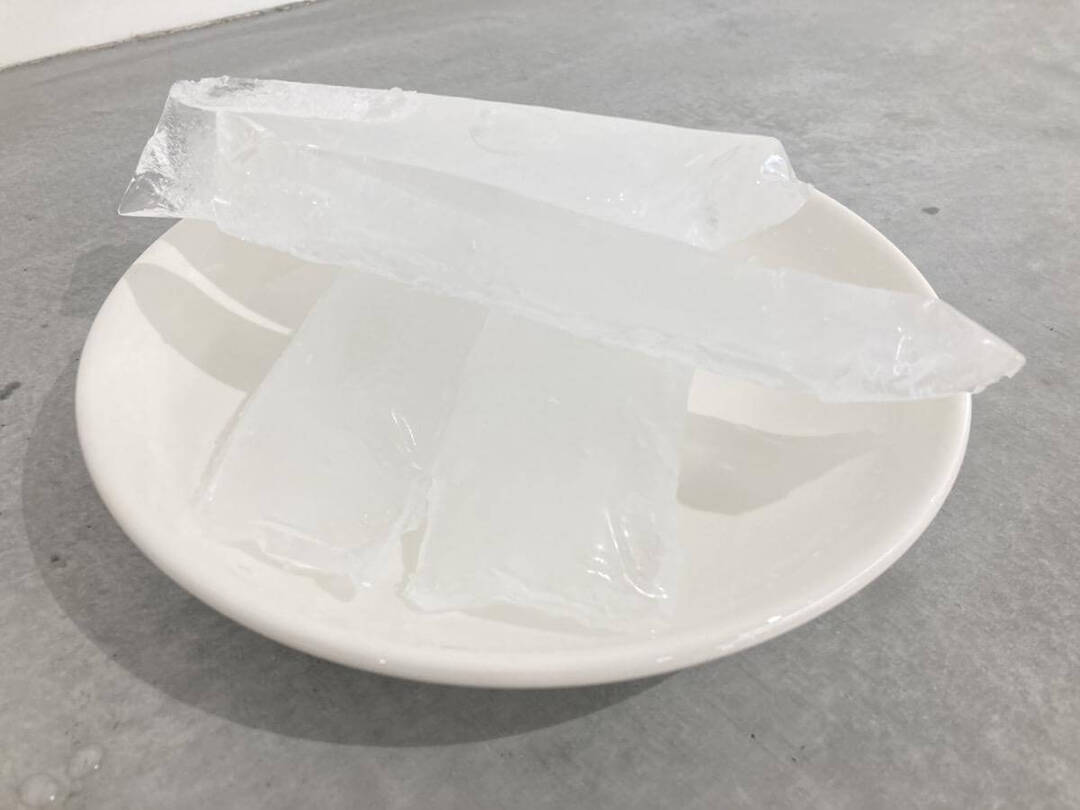 しっかり固まったら、輪ゴムと割りばしを取り、折り目に合わせてパキッと折って、使いたい分だけ取り出せば完成です!