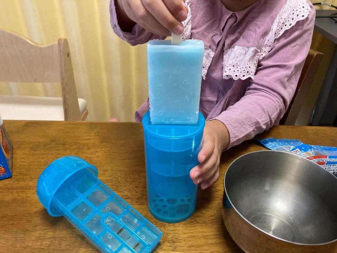 子どもたちから「また食べたい!」の声も上がり、楽しいおやつタイムになりました。製氷皿で氷を作る手間なく「ガリガリ君」を購入したらそのままセットして作ることができる手軽さも◎。夏のおやつの定番になりそうです。
