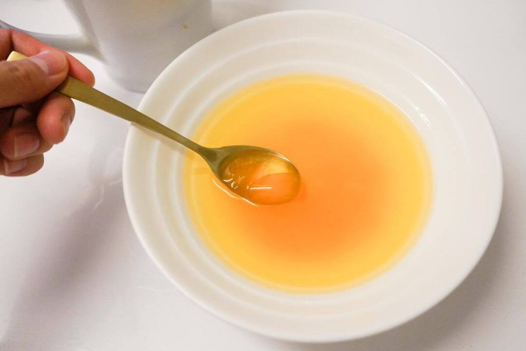 こちらが完成した「果汁グミゼリー」です。透き通った見た目で香りも抜群!