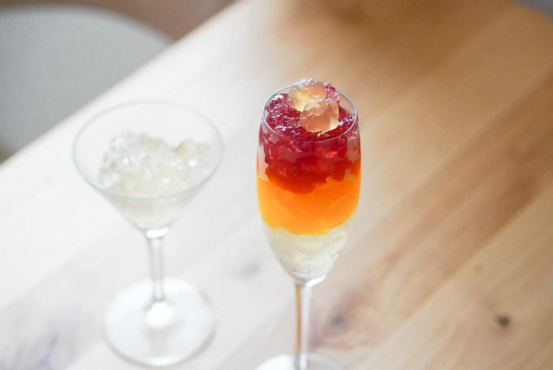 しっかりと固さがあるので、クラッシュゼリーにも◎。シャンパングラスに盛りつけると、おしゃれで清涼感のあるスイーツに大変身。