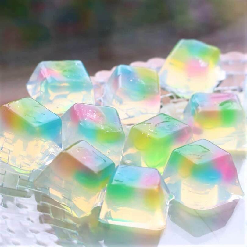 製氷皿で作ることでキューブ型の宝石のように仕上がっています。