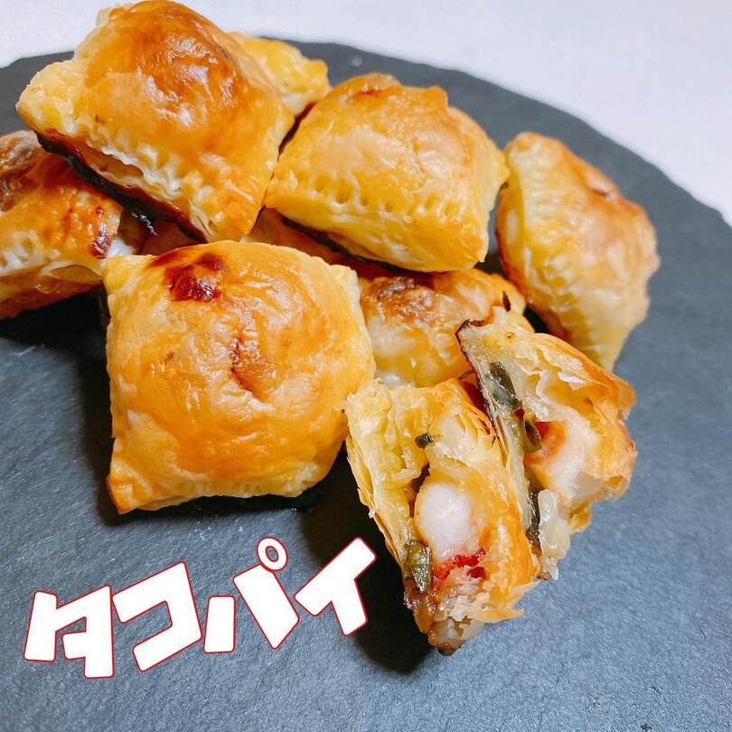 1cchieさんが作ったのは、たこ焼きならぬ「タコパイ」。パイシートに具を挟むのに製氷皿が大活躍!ミニサイズのパイが一度にたくさんできます。具はタコ、ネギ、ソース。取り出したらオーブンで焼いて完成です。