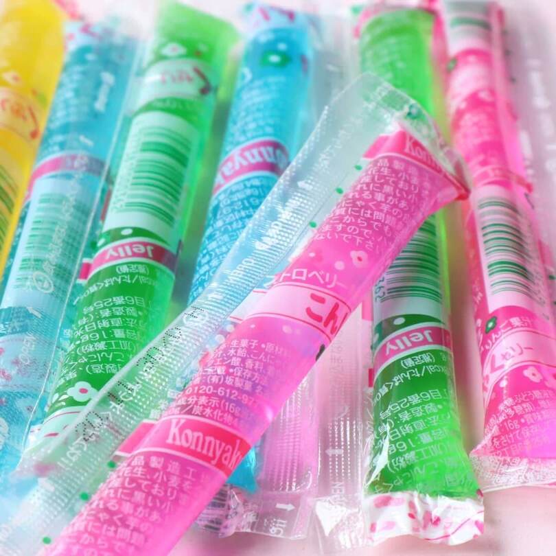 見た目も美しい「キラキラ宝石寒天ゼリー」。色や食感のアクセントに使っているのは、なんと輪切りにした駄菓子のこんにゃくゼリー!
