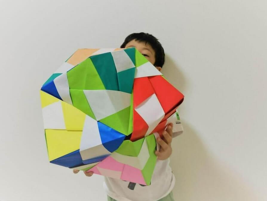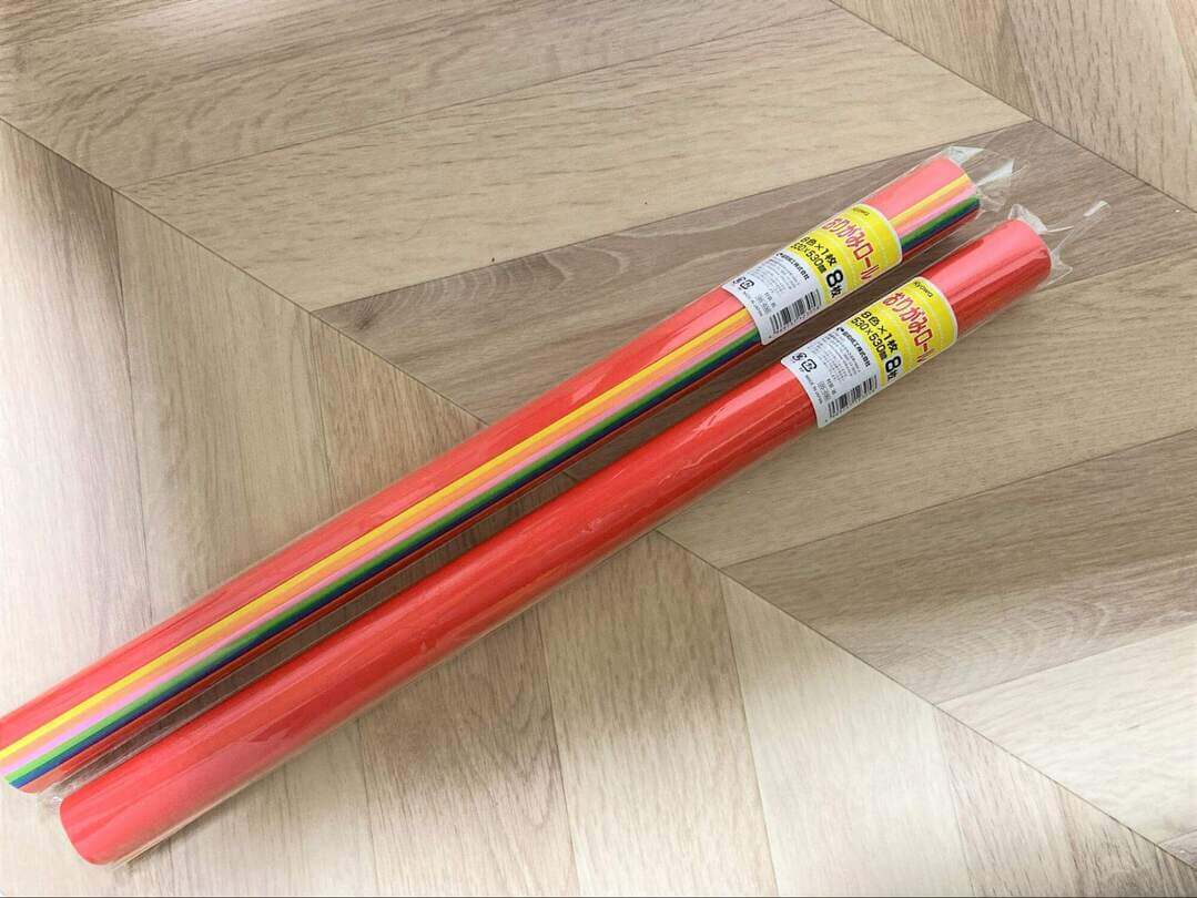 子どものあり余るエネルギーを消費するのにうってつけなのが「巨大折り紙工作」。100円ショップ・セリアでも「おりがみロール」という商品名で販売されています。