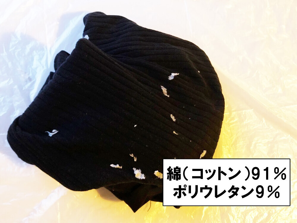 次は、Tシャツなどによく用いられる綿とポリウレタンの「コットン混紡生地」。