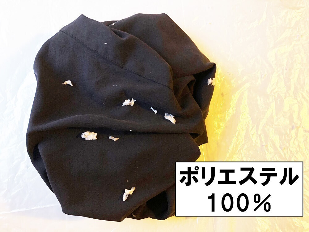 どの素材にもこの裏ワザが使えるのでしょうか。「ポリエステル生地」「コットン混紡(こんぼう)生地」「コットン生地」と3種類の異なる衣類&タオルで検証してみました。