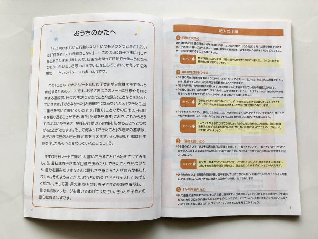 名前の通り「できなかった」ことではなく、「できたこと」を記録していくノートで、半年分記入することができます。