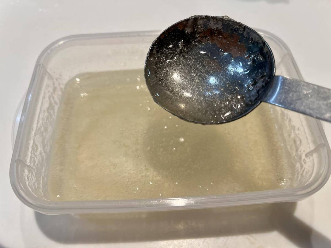 ※ここで混ぜが足りないと、固まらず水飴のような状態になったり固まりにムラができたりするので、よく混ぜましょう。