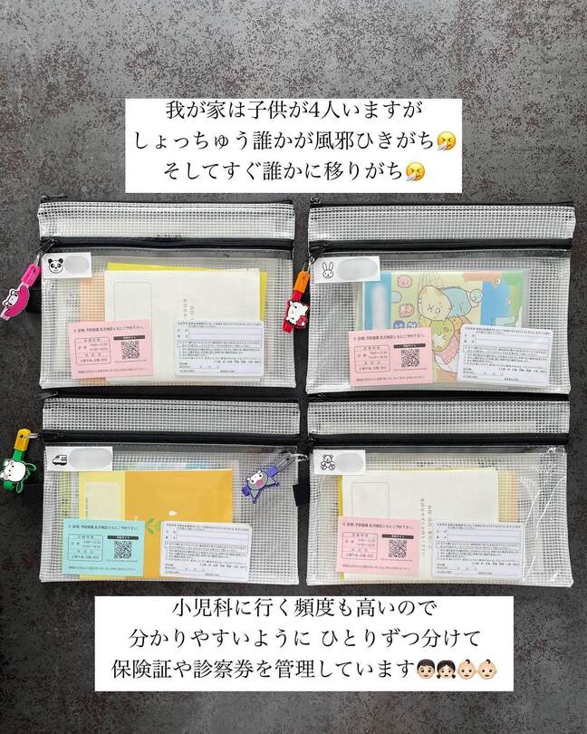 4人のお子さんを持つPONさんが作ったのは、診察券・保険証・母子手帳などを入れた、それぞれの「病院セット」!