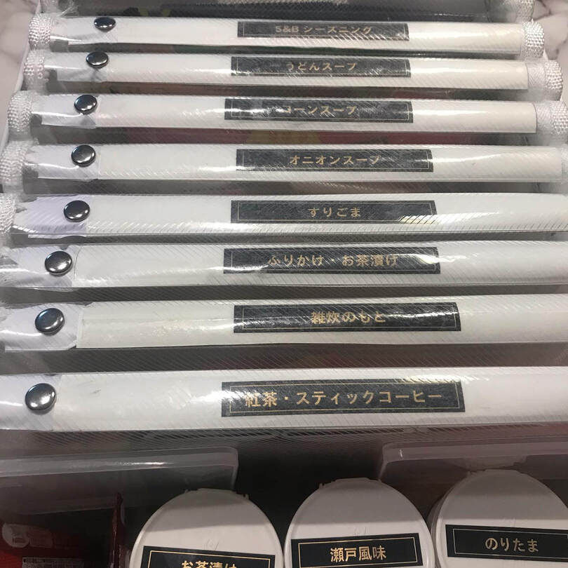 ストックしておきたい粉末スープやのり、ふりかけなどの乾物類は収納に困りがち。元の箱や袋のまま保管すると、意外と場所をとりますよね。