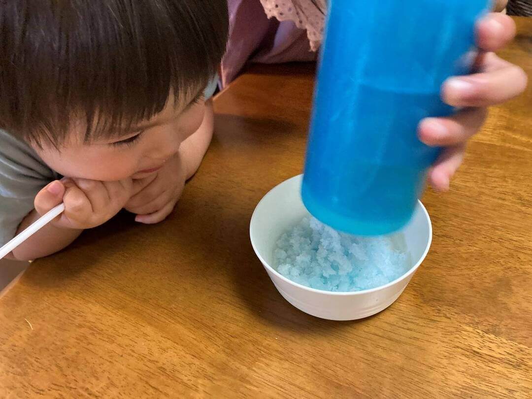 ▼ダイソーのかき氷機でいろいろな味のかき氷にトライ!