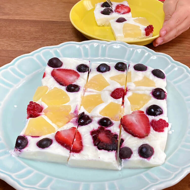 あっさりしていますが、フルーツで満足感もあり大人も子どももおいしく食べられます。飾り付けを子どもに任せるのも楽しいですね。