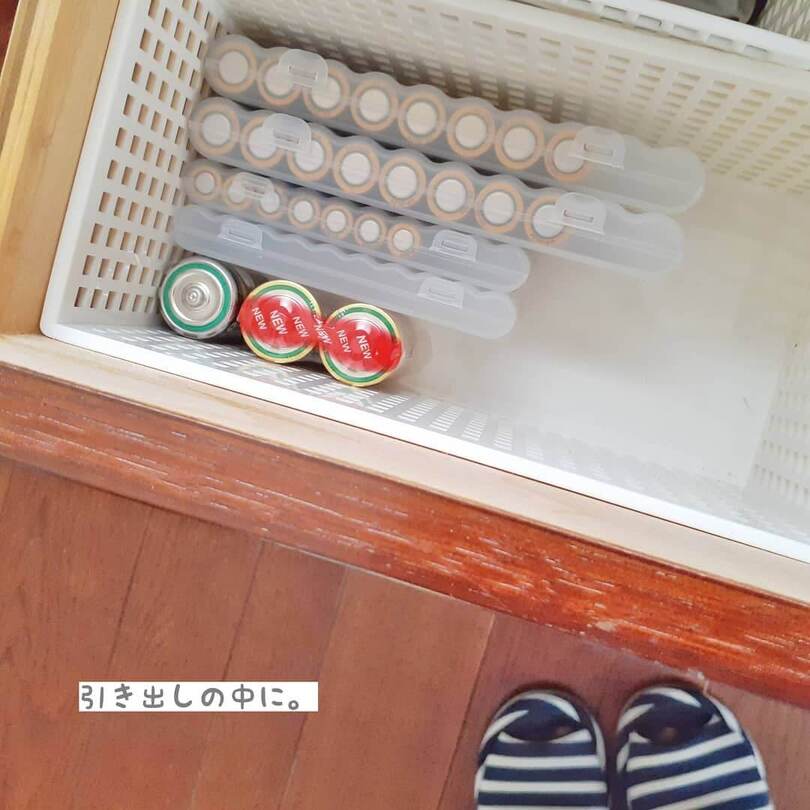 電池のサイズごとに揃えて収納でき、立てておくことも可能。端子同士がくっつかないので、安全性も確保できますね。このケースで、ストックも一目瞭然になり、使いやすくなったそうですよ♪