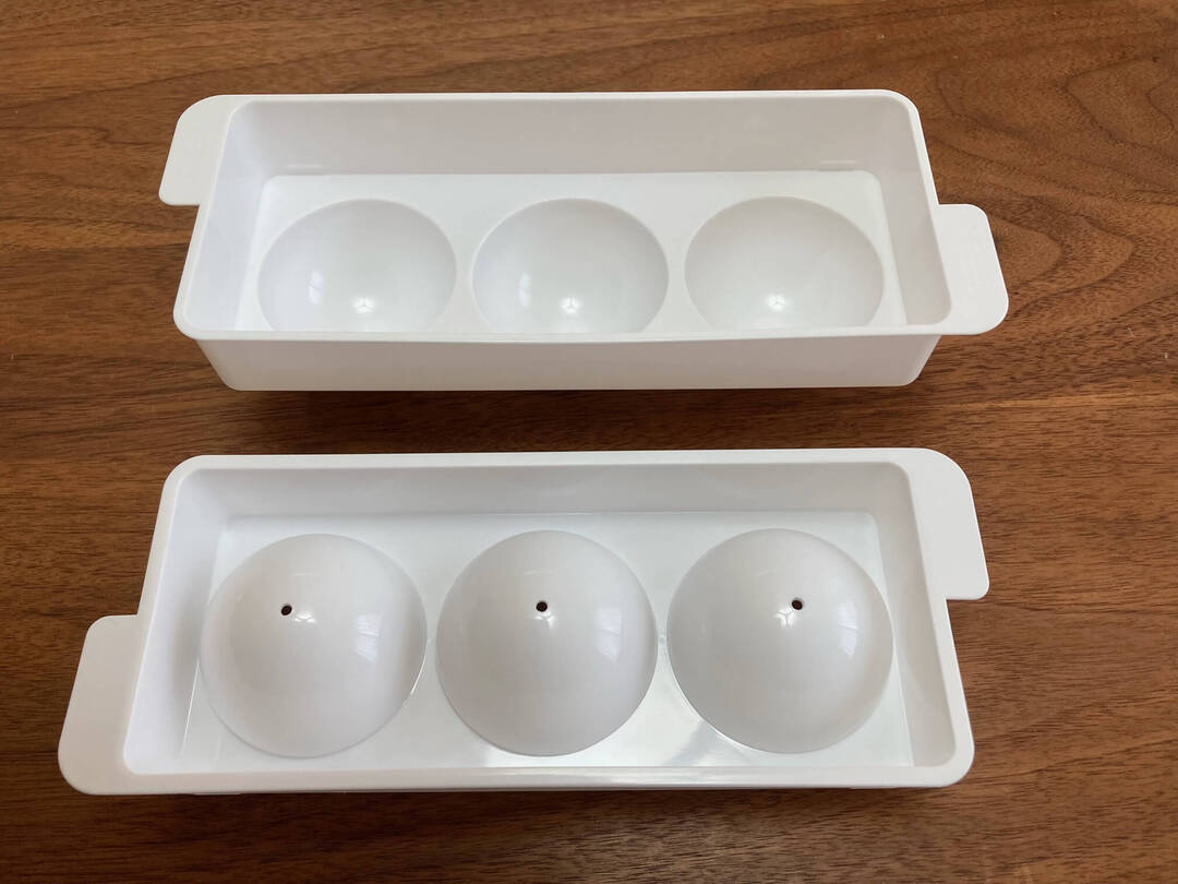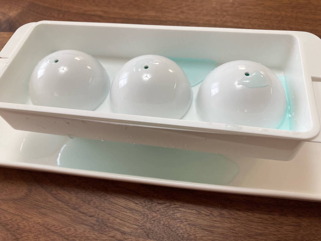 上下に分かれたパーツを組み合わせて、まん丸の氷を作ります。