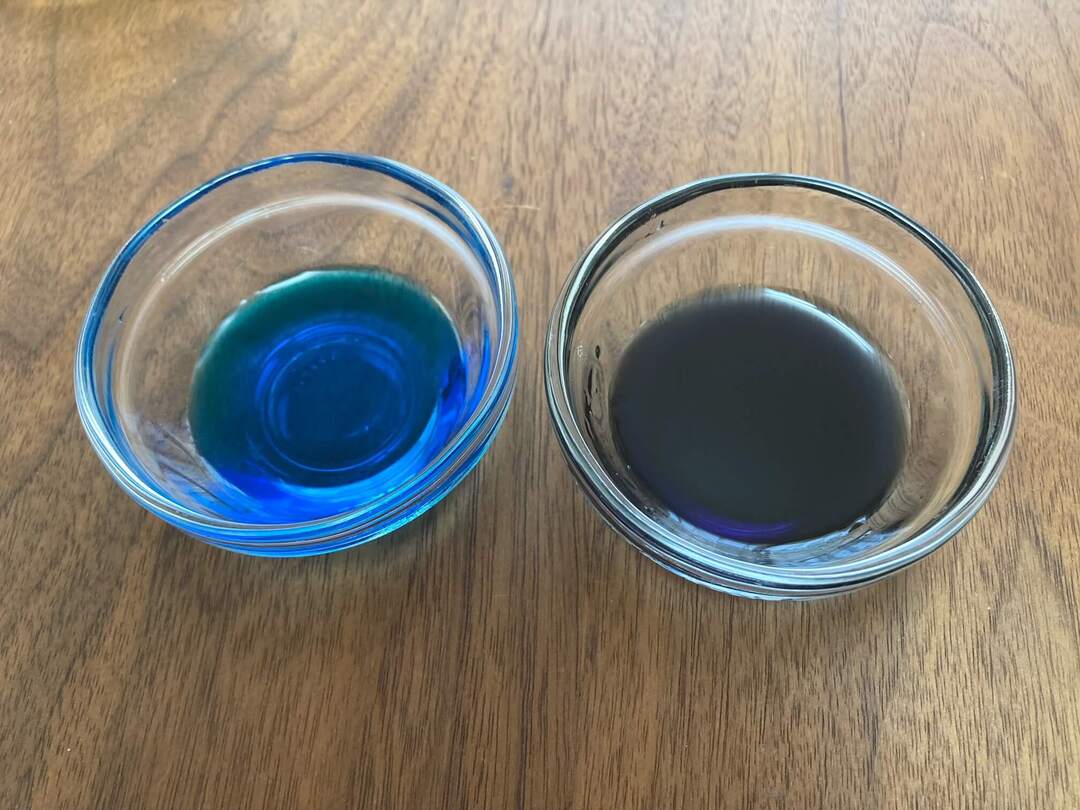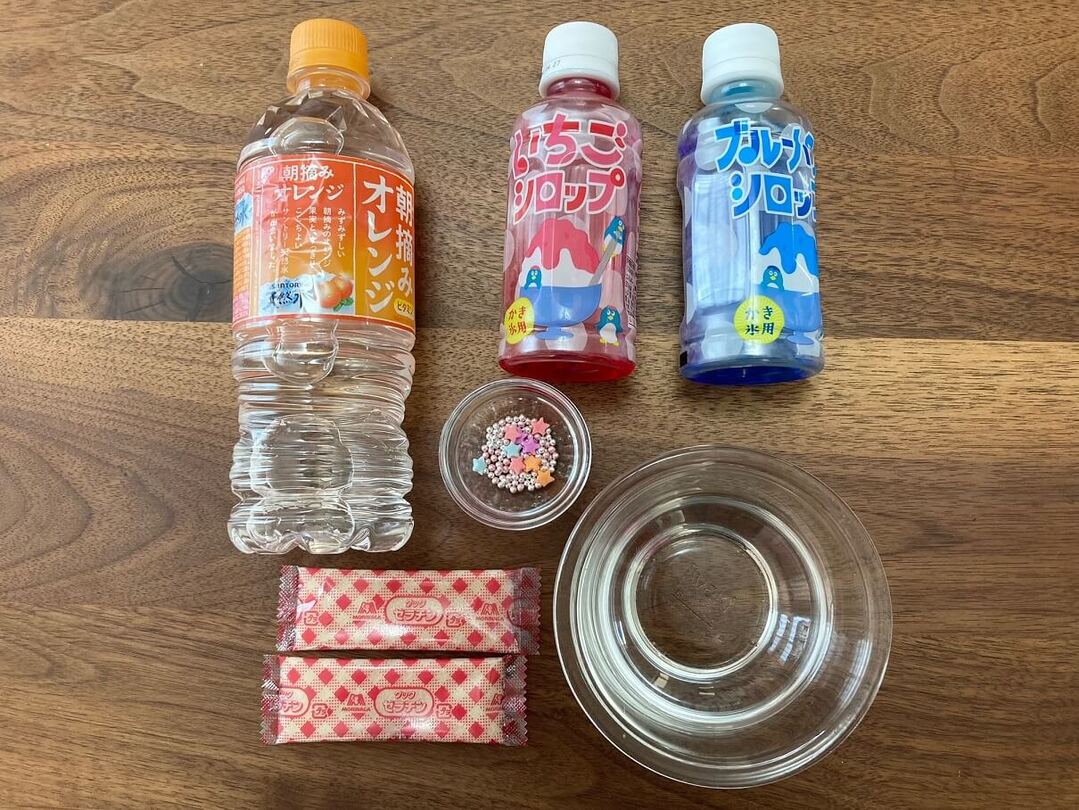 かき氷シロップを青と濃い紫の2種類用意します。