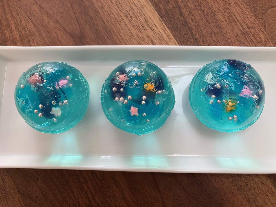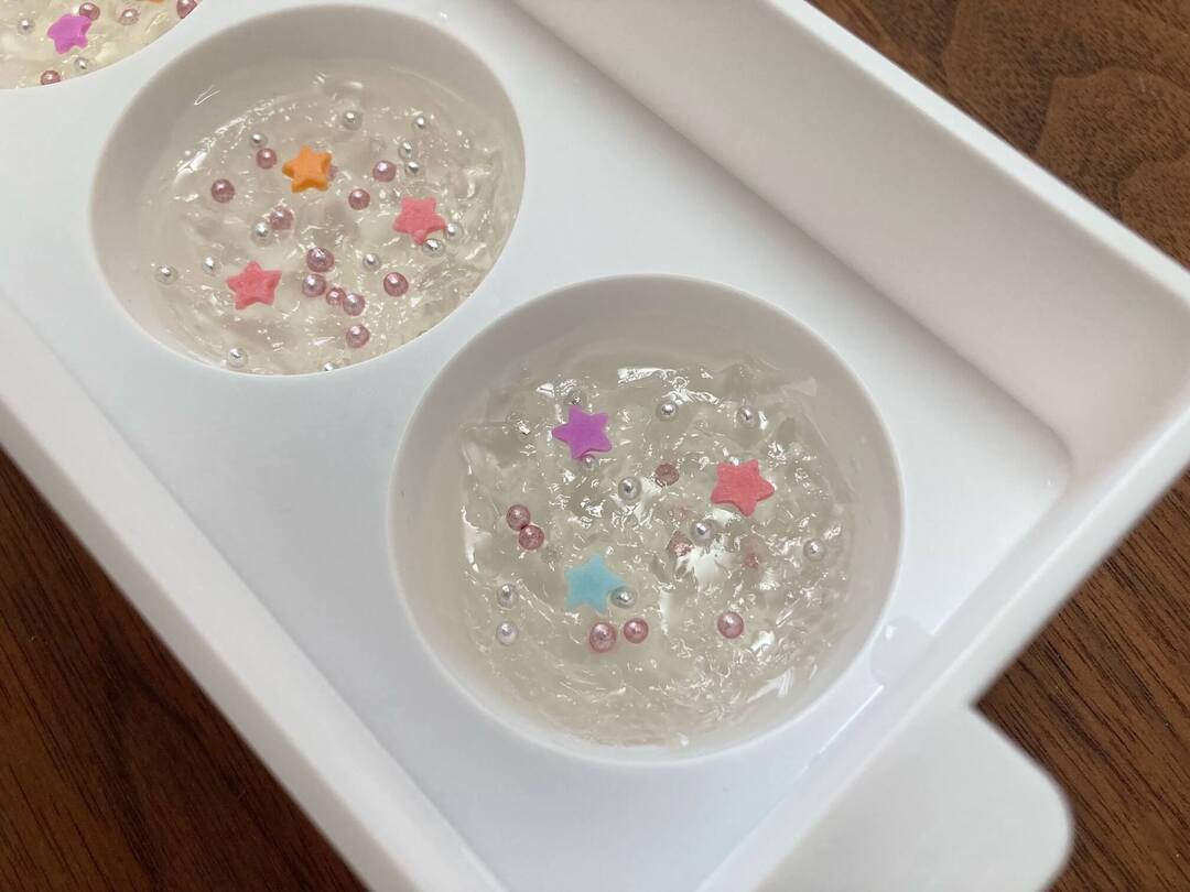 星がきらめくキラキラぷるぷるのゼリー!できあがりは大人も子どももテンションが上がってしまう美しさです。