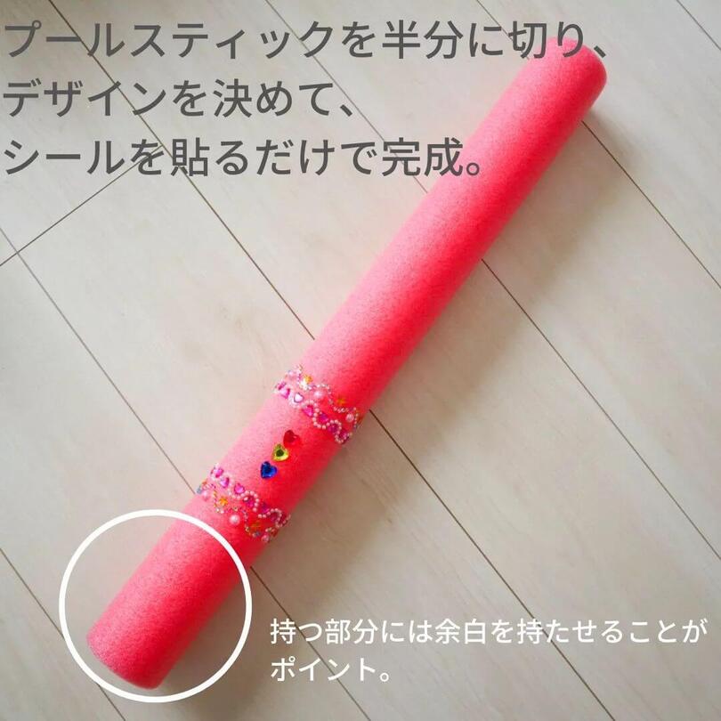 3歳女の子のママMihoさんが作ったのは「プリンセスステッキ」。作り方もとっても簡単!半分にカットしたプールスティックに、かわいいシールを貼るだけ。持ち手部分はデコレーションせず、余白を作るのがポイントです。