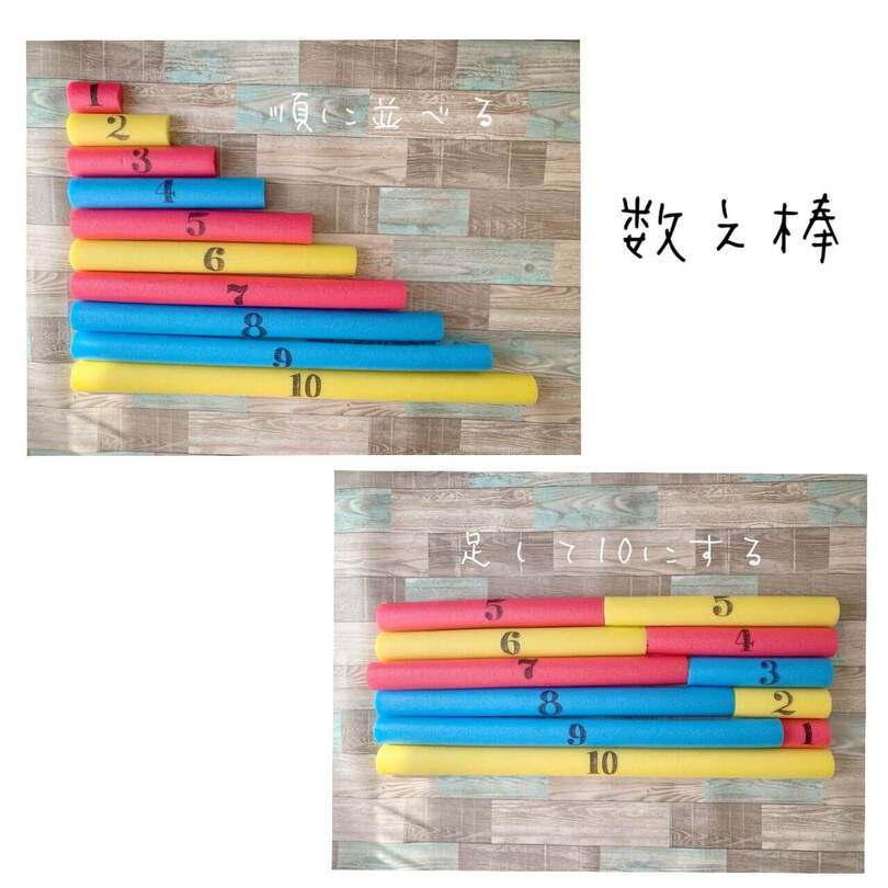 そのほかにも、カットしたプールスティックをシェービングフォームを使って重ね“ケーキ”に見立てたり、折り曲げて網をはりテニスを楽しんだり、シャボン玉の吹き具にしたりと、遊び方は無限大!セリアで見かけたら、ぜひゲットしてみてくださいね。