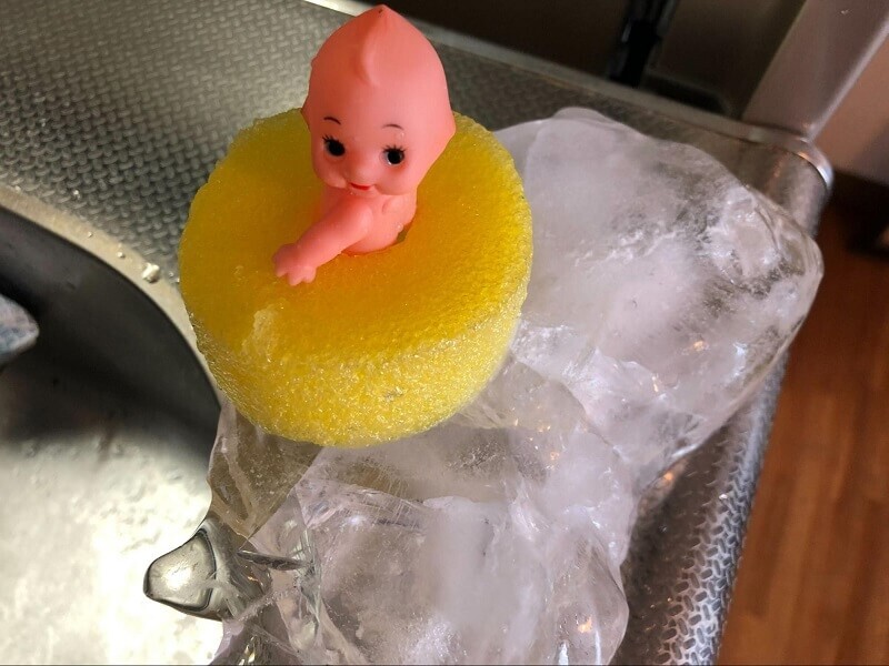 こちらは「キューピーレスキュー遊び」。輪切りのプールスティックにキユーピーちゃん人形をはめ、水の入ったポリ袋に入れて凍らせれば完成!