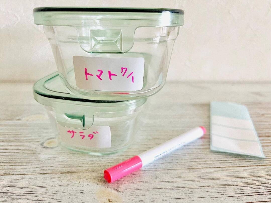 わが家ではマスキングテープ+付箋を活用しているのですが、気づけば冷蔵庫の中でペロッと剥がれていることがしばしば…。かといって容器に直接書くわけにはいかないので困ってしまいます。