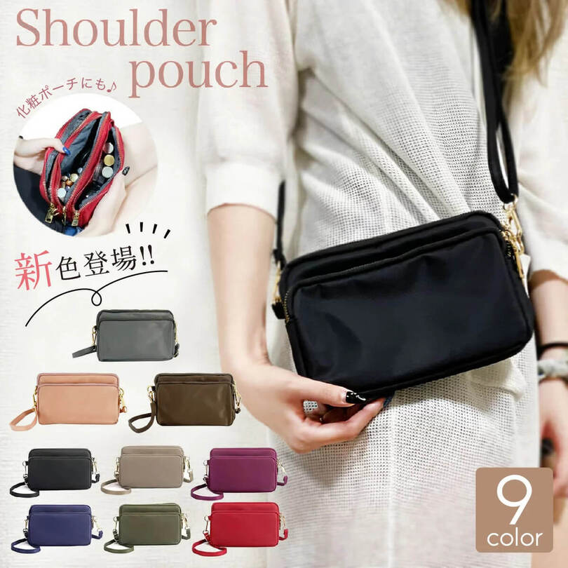 公園遊びが多いママにおすすめなのがこちら。3ポケットに財布、鍵、スマホがすっきりと収まる、バッグタイプのスマホショルダー。ナイロン生地のバッグは軽量&防水仕様になっているので、公園やテーマパークのアクティブなおでかけに最適!大人可愛いピンクや、上品なグレーなど、全9色から選べます。