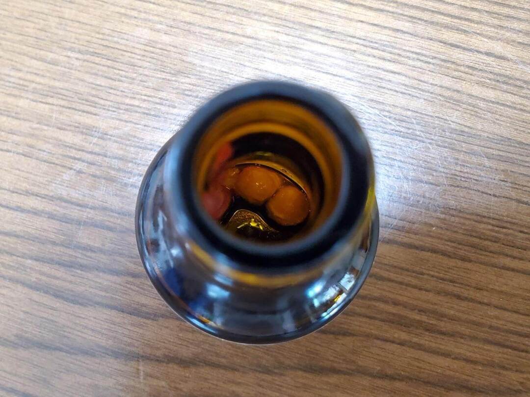 ボトルの口に合わせて、すっぽりと実がはまってしまいました。実の大きさに対してボトルの口径が大きすぎました。