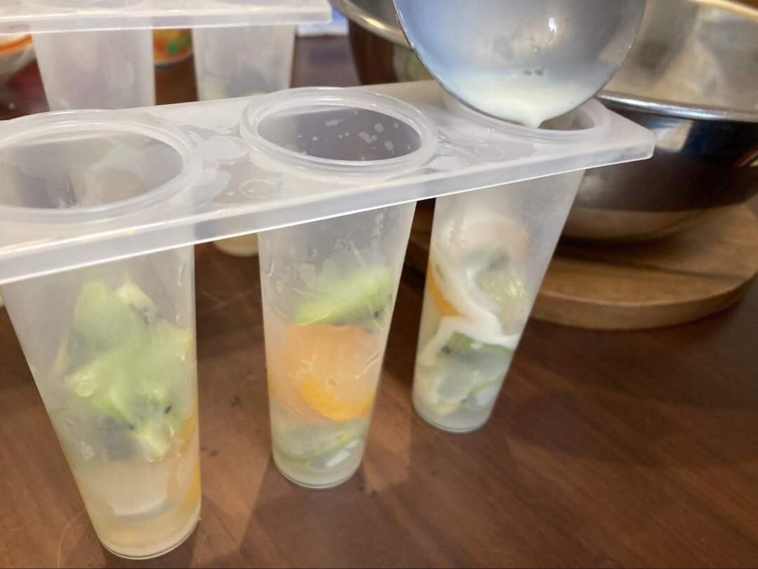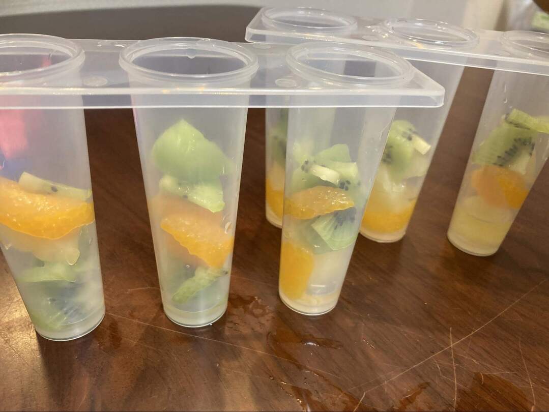 フルーツをカットして、アイスキャンディメーカー(アイスを固める型)に入れます。