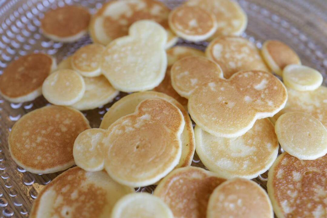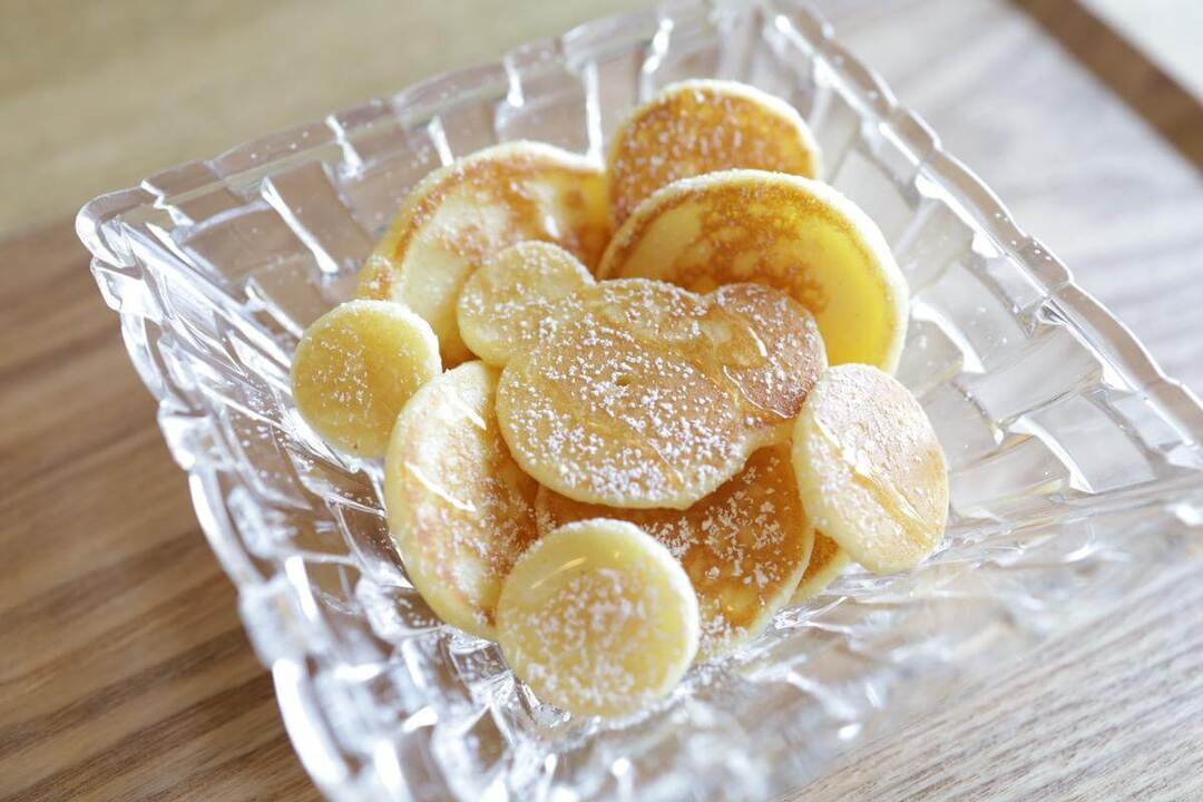 ふっくらとしたミニパンケーキのできあがりです。大小の丸をつなげると、くまさん形にもなりますよ。