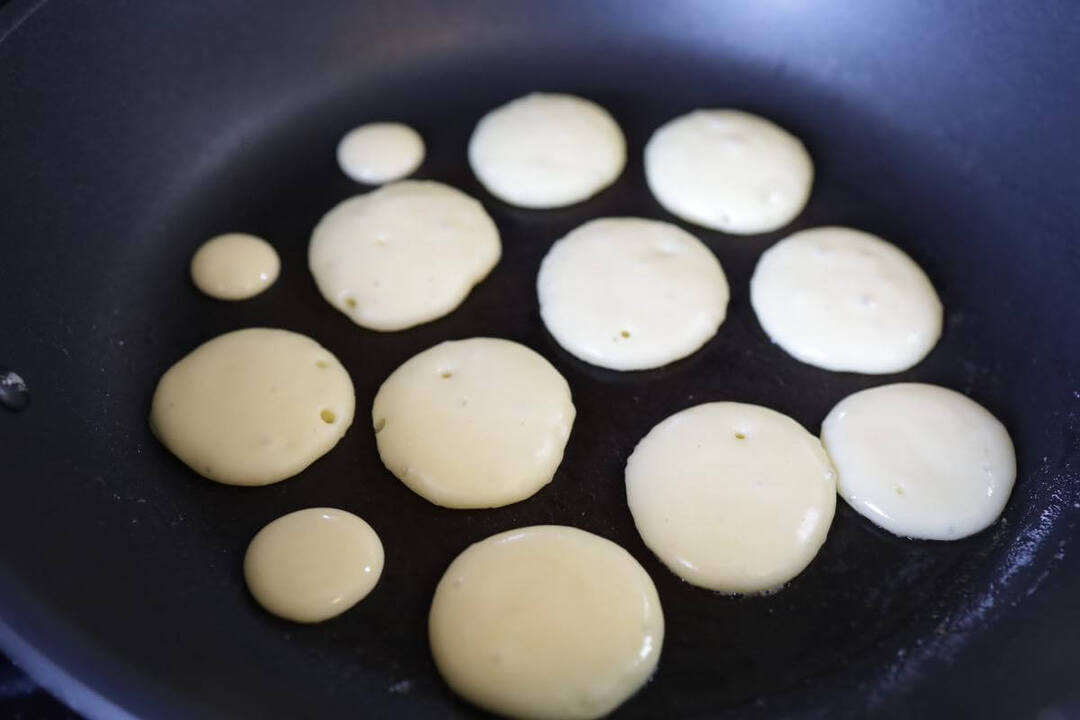 大きさはお好みで!表面が乾いてプツプツと小さな泡がでたらひっくり返します。