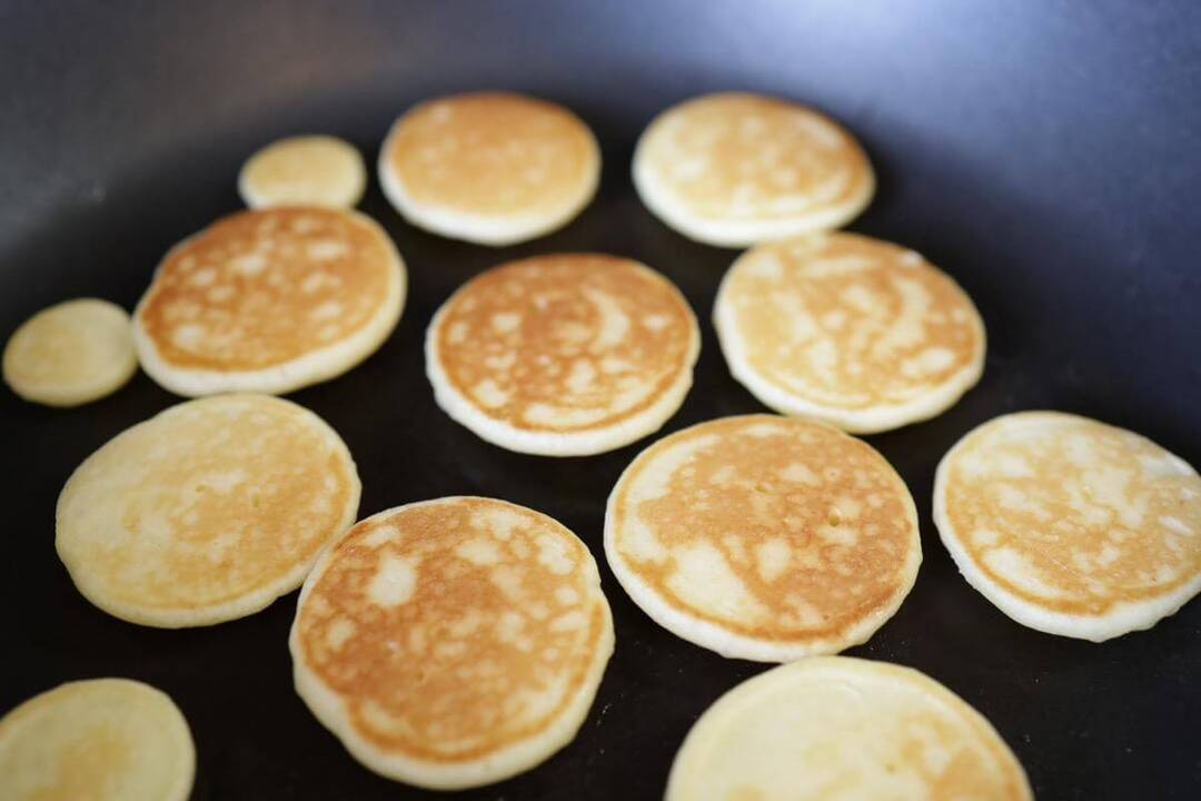 液を流し過ぎて思ったよりも大きいパンケーキになってしまうこともしばしば。