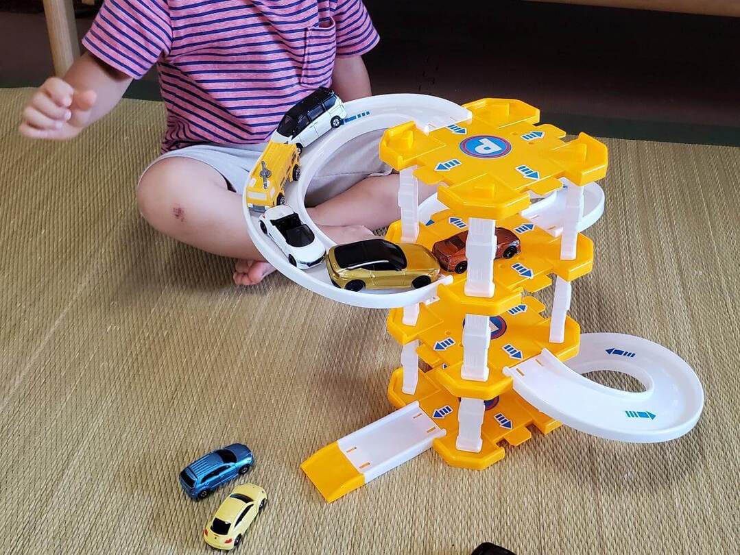 100均の中でもオリジナルのおもちゃが豊富なダイソーで、車好きの子が飛びつきそうな「立体駐車場」を発見。トミカをこよなく愛するわが子に大ヒットしたので、おもちゃの詳細とトミカとの互換性などを詳しくレポートします!