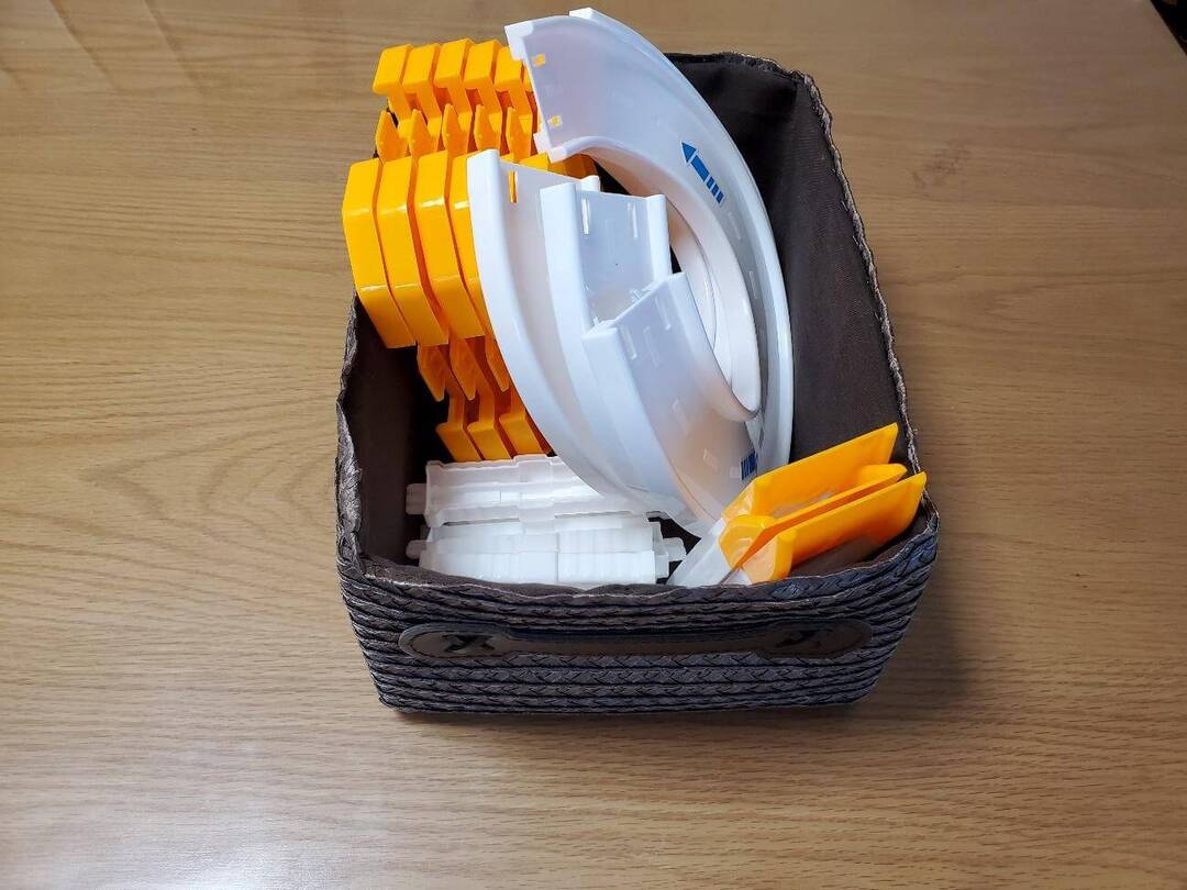 遊んだあとは、お片づけ!3歳の息子でもひとりでバラバラにできたのも重要なポイント。パーツの連結部分もきちんとしていて、100均とは思えないクオリティです!