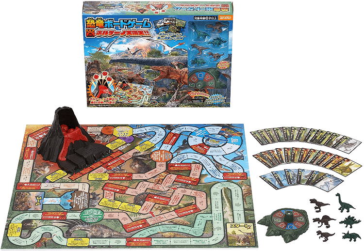 プレイヤーはルーレットを回して恐竜フィギュア型のコマでゴールを目指して冒険を進めますが、注目はボード上にある大きな火山。ゴールは目の前…と思いきやドカーンッ!と噴火します。