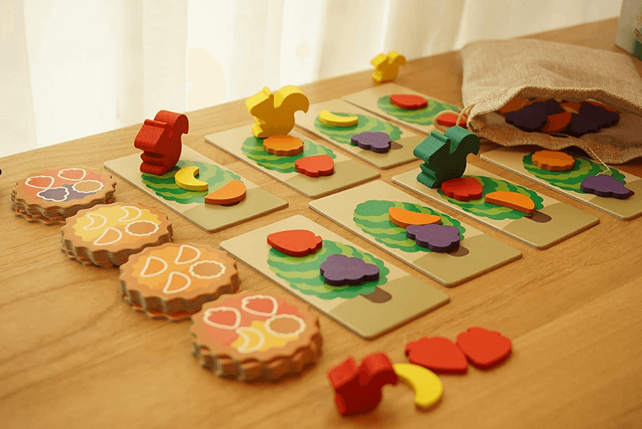 リスのタルトやさんを舞台にしたかわいいボードゲーム。タルトを作るために、リスの親子の駒を上手に動かして、木に実っているフルーツを集めます。たくさんフルーツタルトを焼いて、森で人気のタルトやさんを目指そう!