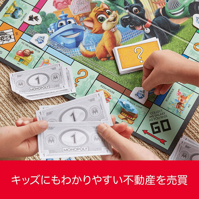 世界中で愛されるボードゲームの代表といえば「モノポリー」。不動産売買をテーマにしたモノポリーを子どもでもプレイしやすいように設計されたのがこちら。
