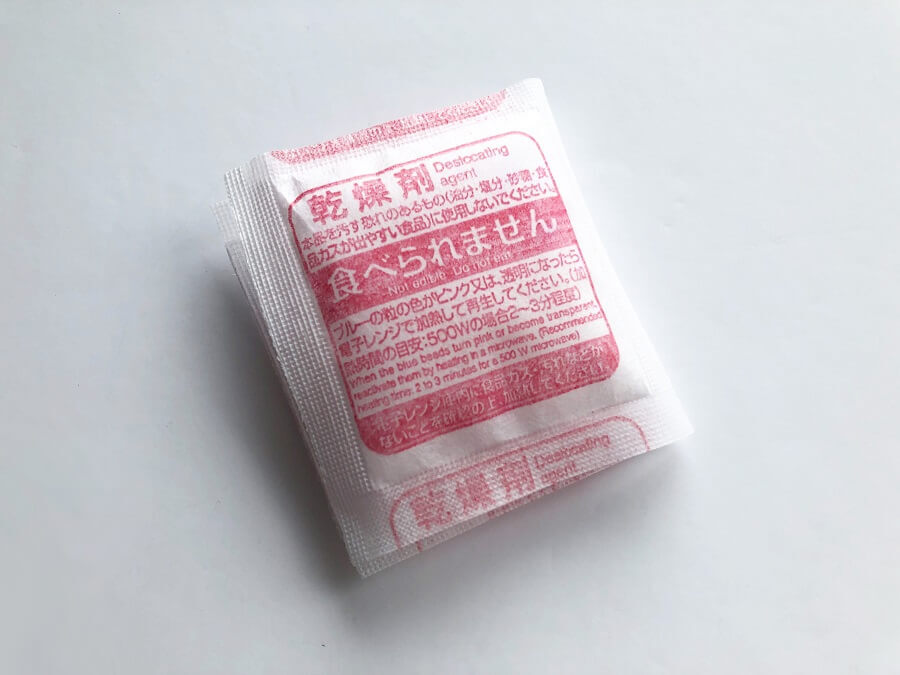 お菓子や乾物に付属している「たべられません」と書いてあるものはほとんど「シリカゲル除湿剤」なので、それを流用してもOK!100円ショップで購入することもできますよ。